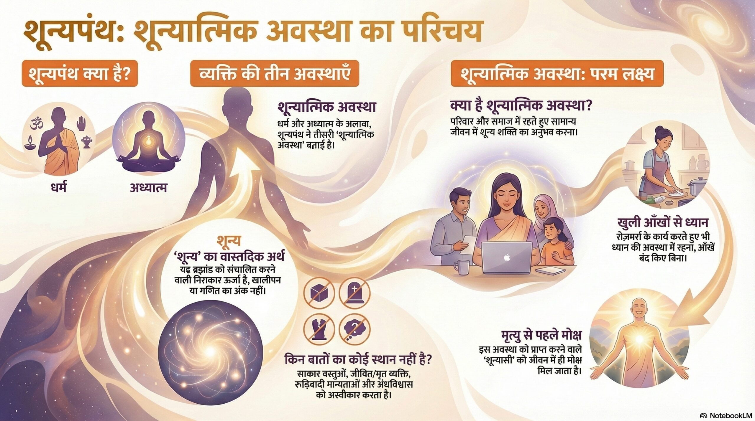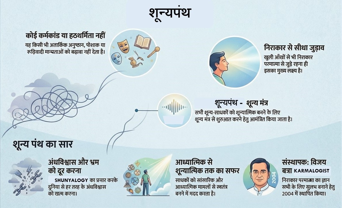 शून्यपंथ / ShunyaPanth® is based on the ideology of Shunya / शून्य, (the formless and unbiased Energy which operates the whole universe) contributes to remove all types of superstitions in the world. ShunyaPanth has been preaching Shunyalogy (Shunya Gyan) for many years, and has frequently organized discussions on attainment of Shunya and Moksha (मोक्ष) which helps eradicate misconceptions and illusions regarding these concepts. ShunyaPanth helps you to elevate yourself from spiritual to Shunyatmik (शून्यात्मिक) and guides you to follow Shunya.